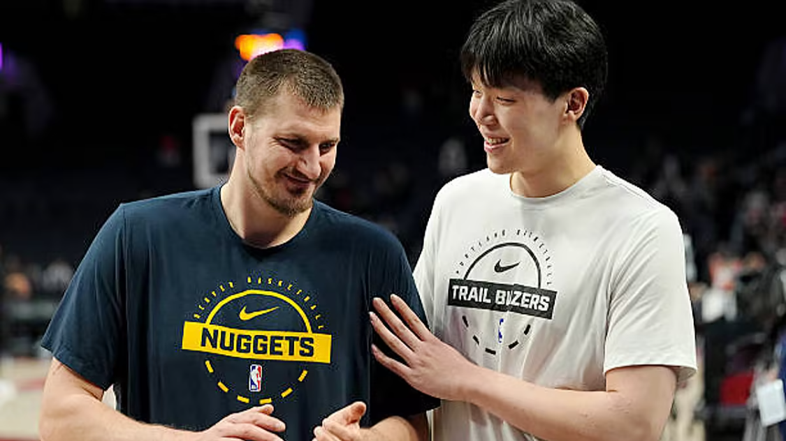 今年2月21日,掘金大胜开拓者的比赛前,约基奇主动走向正在热身的杨瀚森,两人聊了近一分钟,还拥抱合影。杨瀚森紧张得不知道说什么好,约基奇告诉他:“不要总是紧张,放手去做,好好训练,你是个不错的球员。”
